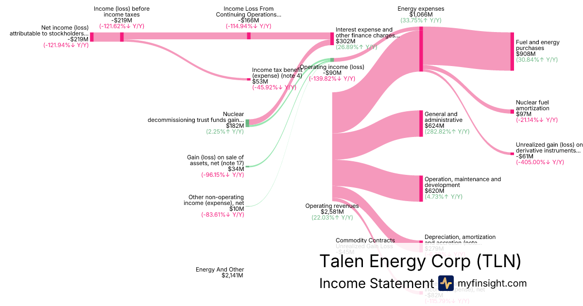 For the year ending 2025-12-31, TLN made $2,581M in revenue. -$219M in net income. Net profit margin of -8.49%.