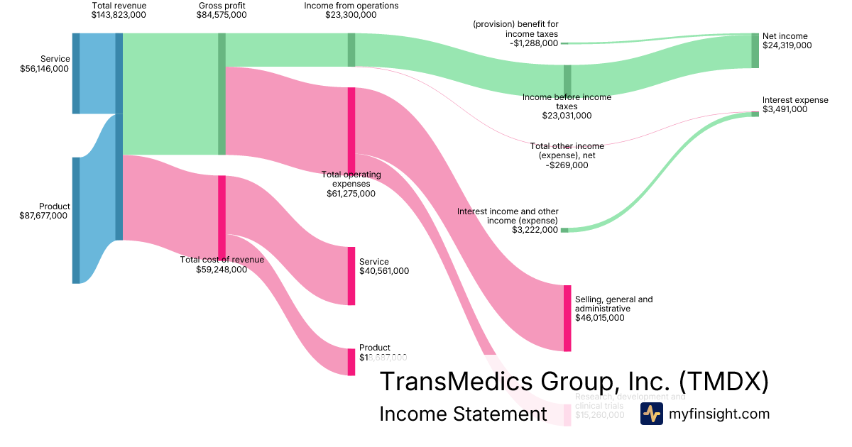 For the quarter ending 2025-09-30, TMDX made $143,823,000 in revenue. $24,319,000 in net income. Net profit margin of 16.91%.