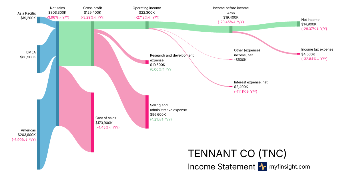 For the quarter ending 2025-09-30, TNC made $303,300K in revenue. $14,900K in net income. Net profit margin of 4.91%.