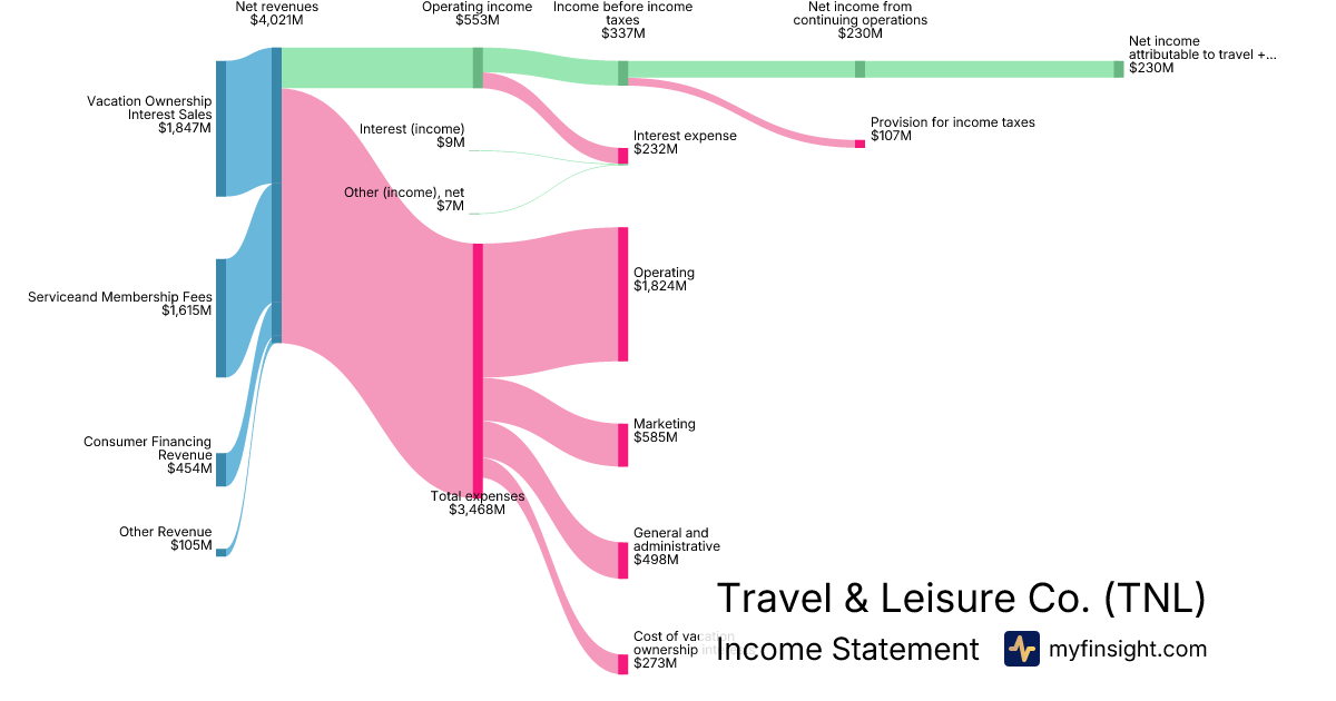For the year ending 2025-12-31, TNL made $4,021M in revenue. $230M in net income. Net profit margin of 5.72%.