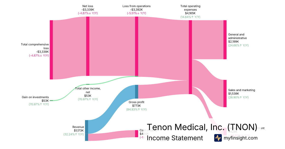 For the quarter ending 2025-09-30, TNON made $1,173K in revenue. -$3,339K in net income. Net profit margin of -284.65%.
