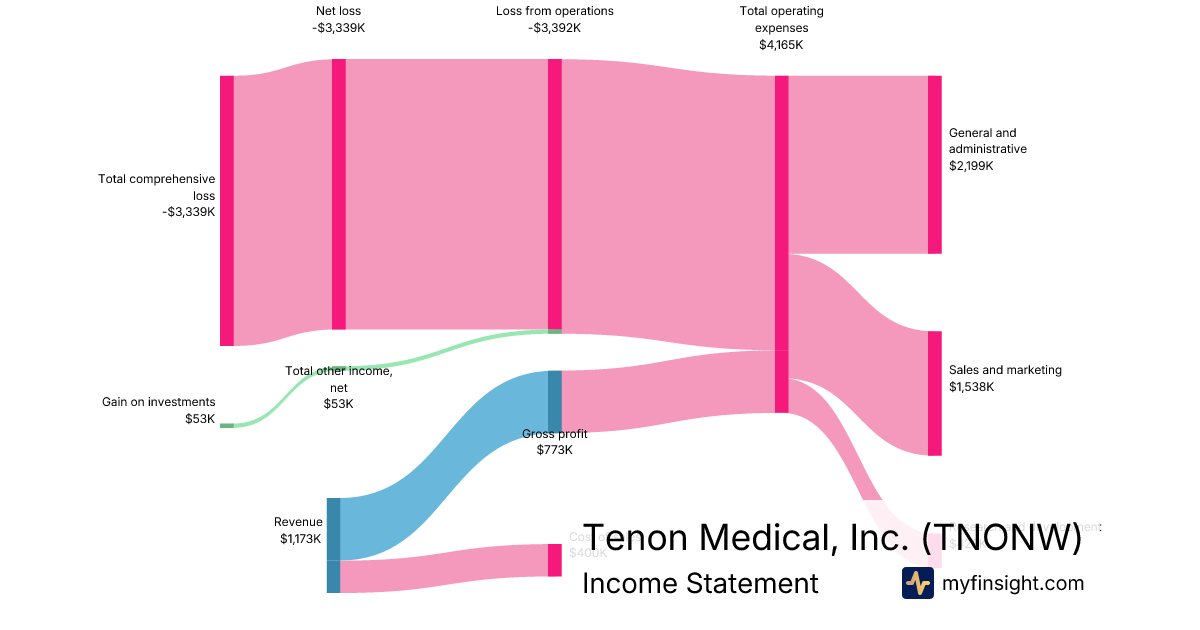 For the quarter ending 2025-09-30, TNONW made $1,173K in revenue. -$3,339K in net income. Net profit margin of -284.65%.