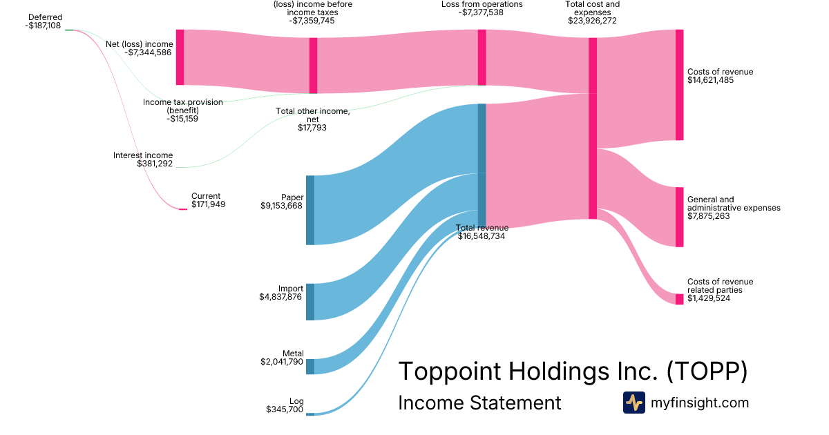 For the year ending 2025-12-31, TOPP made $16,548,734 in revenue. -$7,344,586 in net income. Net profit margin of -44.38%.