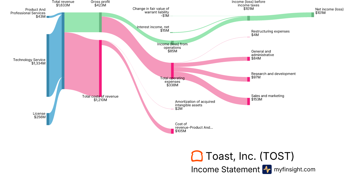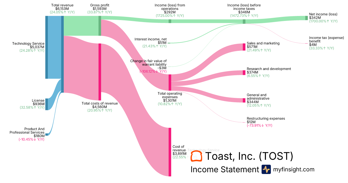 For the year ending 2025-12-31, TOST made $6,153M in revenue. $342M in net income. Net profit margin of 5.56%.
