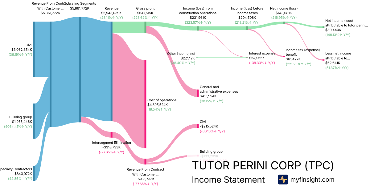 For the year ending 2025-12-31, TPC made $5,543,039K in revenue. $80,440K in net income. Net profit margin of 1.45%.