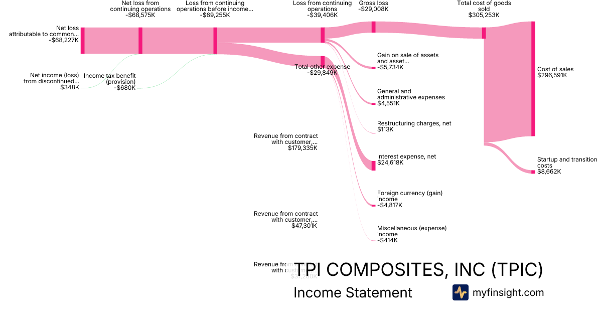 For the quarter ending 2025-06-30, TPIC made $276,245K in revenue. -$68,227K in net income. Net profit margin of -24.70%.