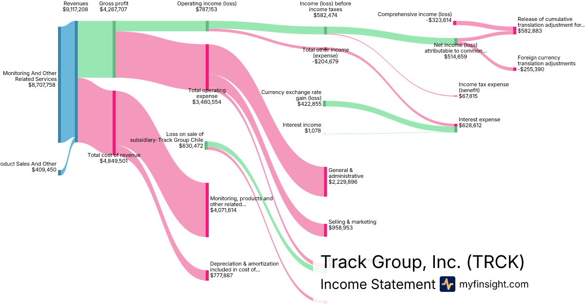 For the quarter ending 2025-12-31, TRCK made $9,117,208 in revenue. -$323,614 in net income. Net profit margin of -3.55%.