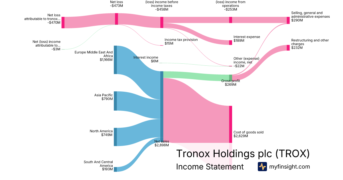 For the year ending 2025-12-31, TROX made $2,898M in revenue. -$470M in net income. Net profit margin of -16.22%.