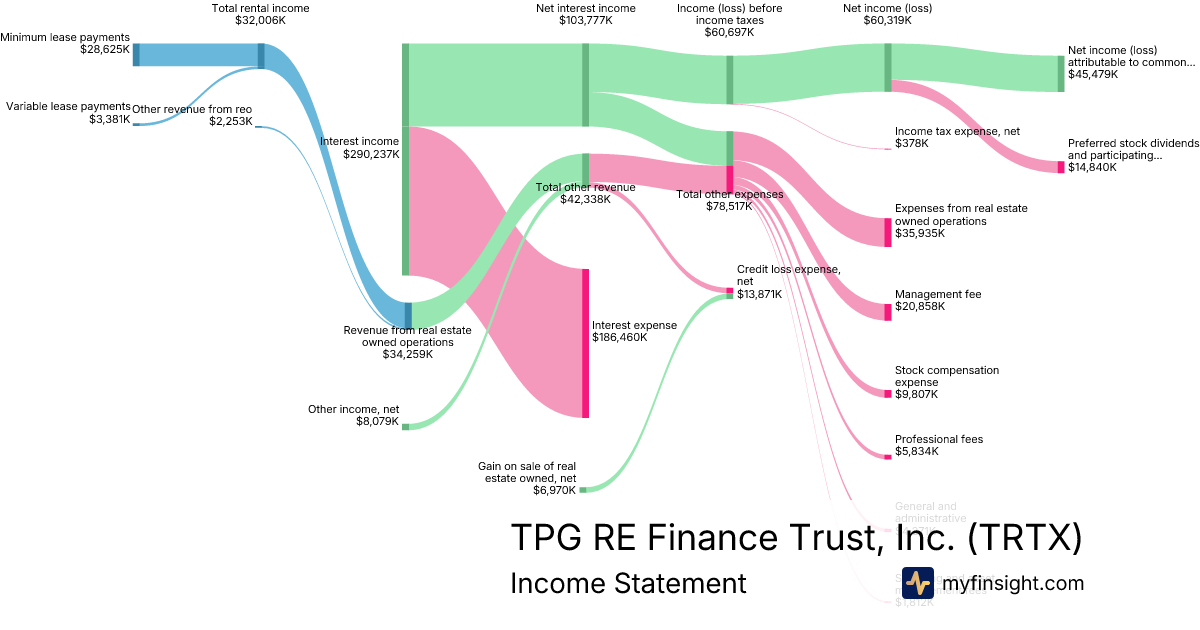 For the year ending 2025-12-31, TRTX made $34,259K in revenue. $45,479K in net income. Net profit margin of 132.75%.