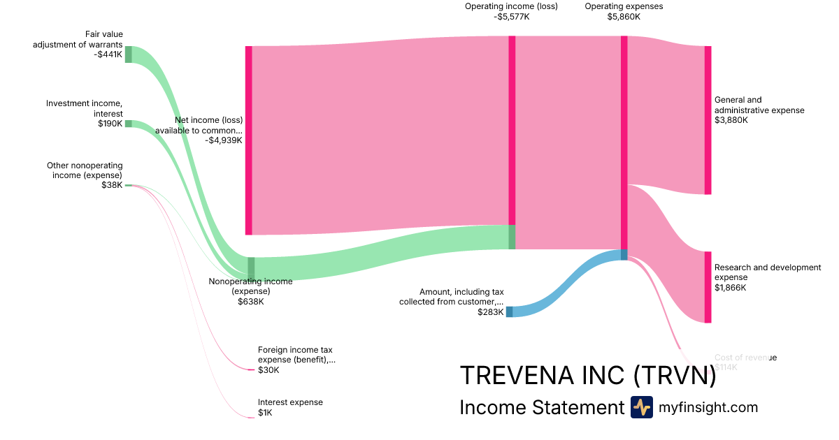 For the quarter ending 2024-09-30, TRVN made $283K in revenue. -$4,939K in net income. Net profit margin of -1745.23%.