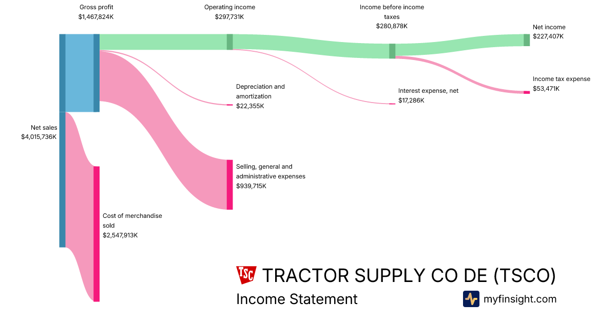 For the year ending 2025-12-27, TSCO made $15,524,046K in revenue. $1,096,087K in net income. Net profit margin of 7.06%.