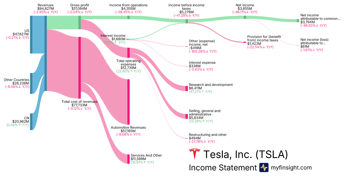 For the year ending 2025-12-31, TSLA made $94,827M in revenue. $3,794M in net income. Net profit margin of 4.00%.