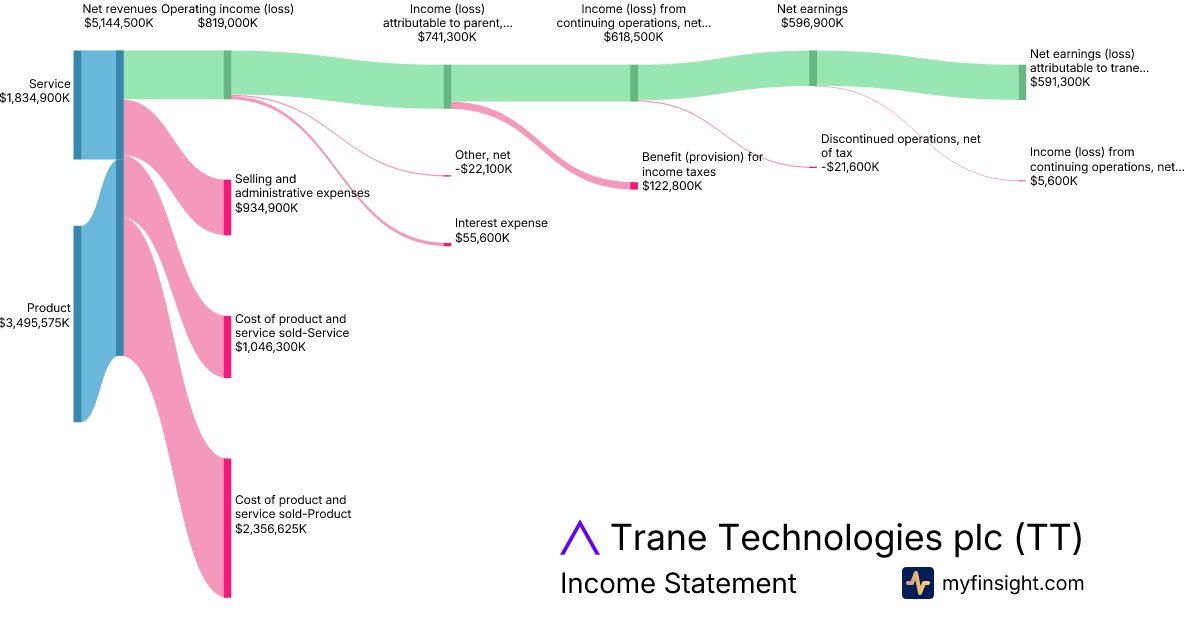 For the year ending 2025-12-31, TT made $21,321.9M in revenue. $2,918.6M in net income. Net profit margin of 13.69%.