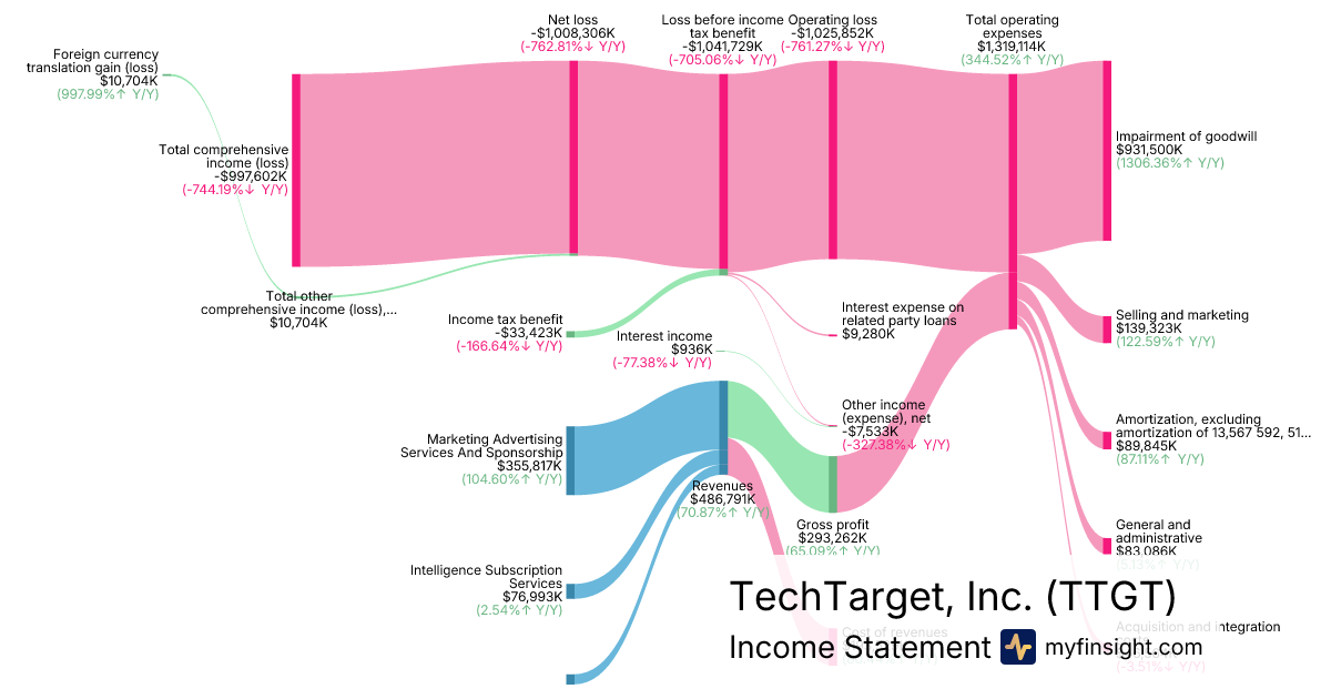 For the year ending 2025-12-31, TTGT made $486,791K in revenue. -$997,602K in net income. Net profit margin of -204.93%.