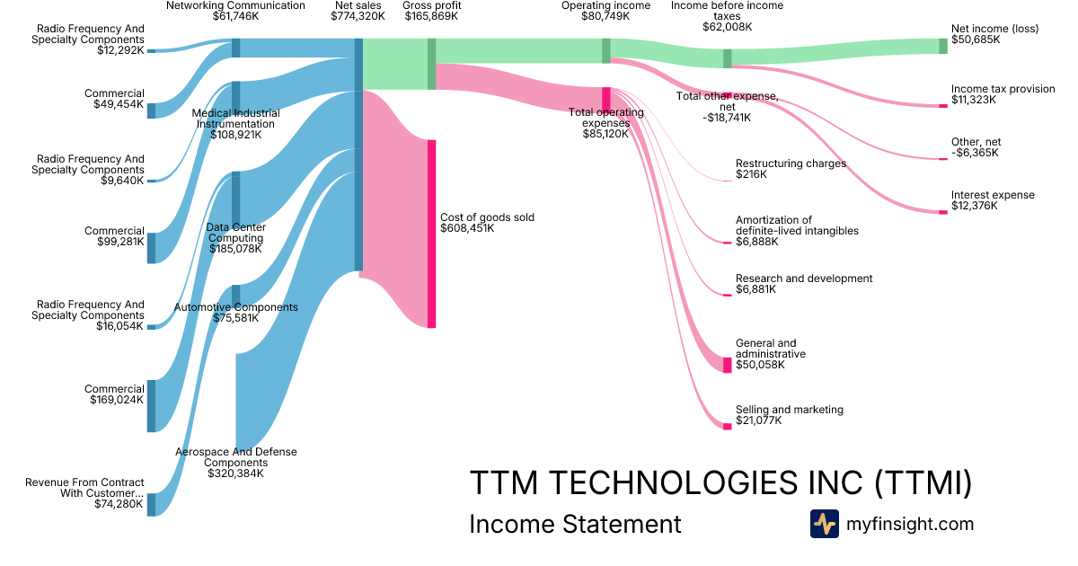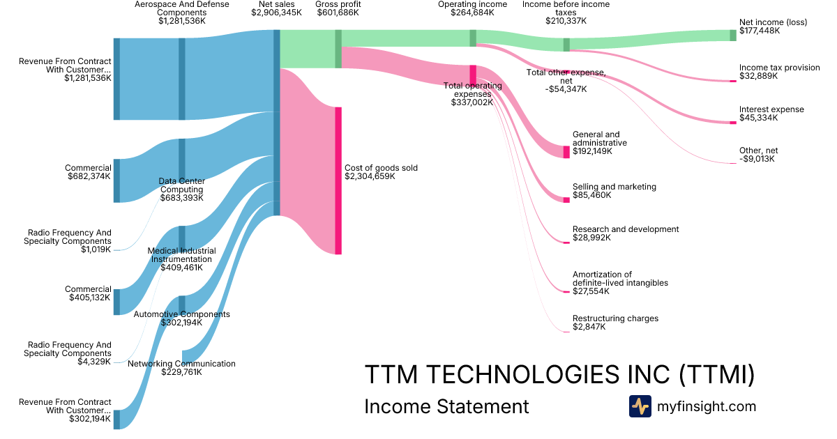 For the year ending 2025-12-29, TTMI made $2,906,345K in revenue. $177,448K in net income. Net profit margin of 6.11%.