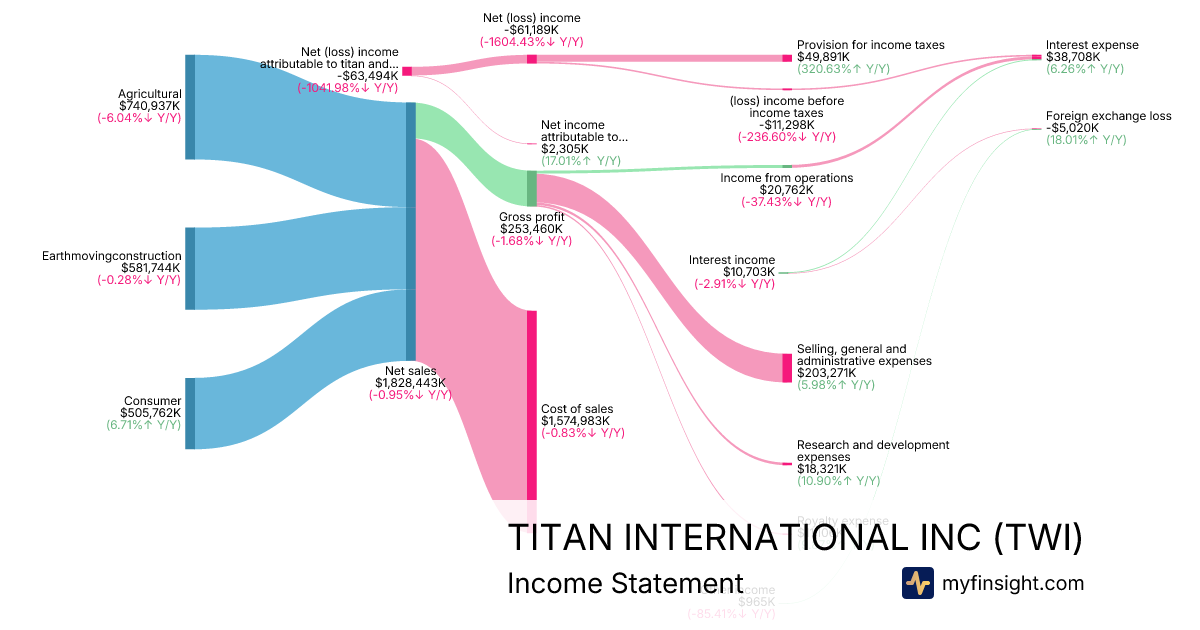 For the year ending 2025-12-31, TWI made $1,828,443K in revenue. -$63,494K in net income. Net profit margin of -3.47%.