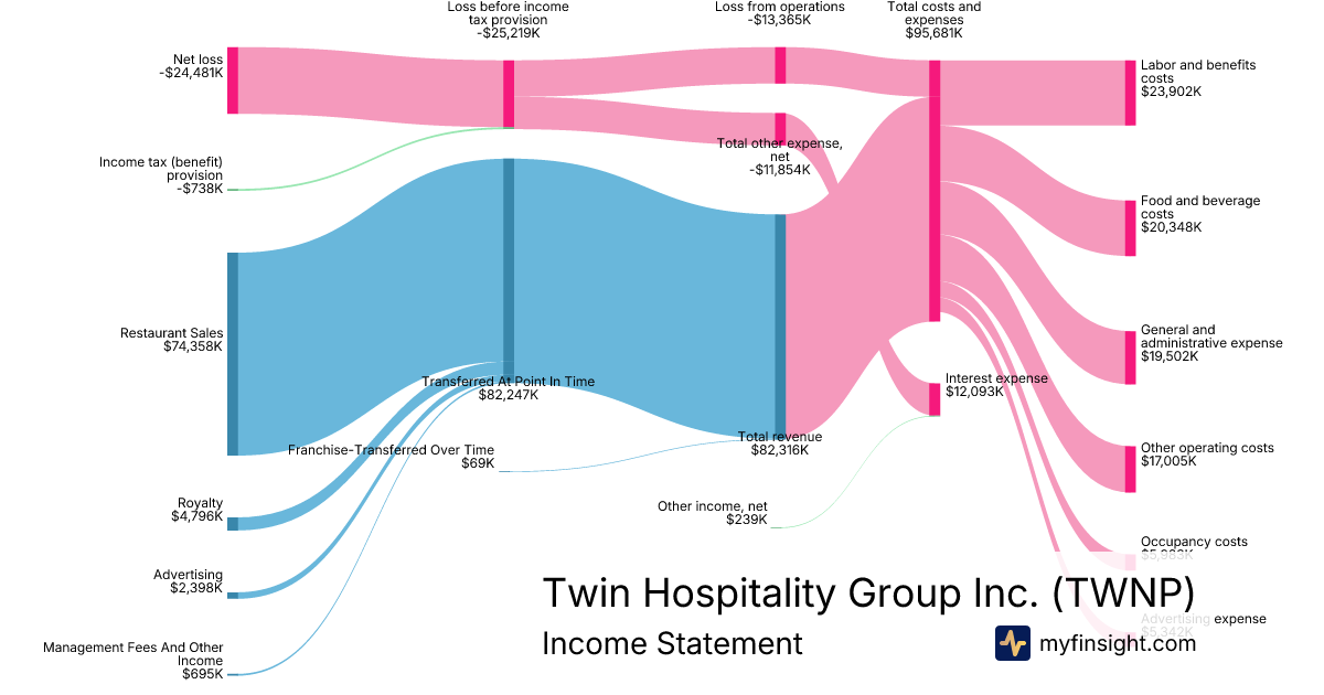 For the quarter ending 2025-09-28, TWNP made $82,316K in revenue. -$24,481K in net income. Net profit margin of -29.74%.