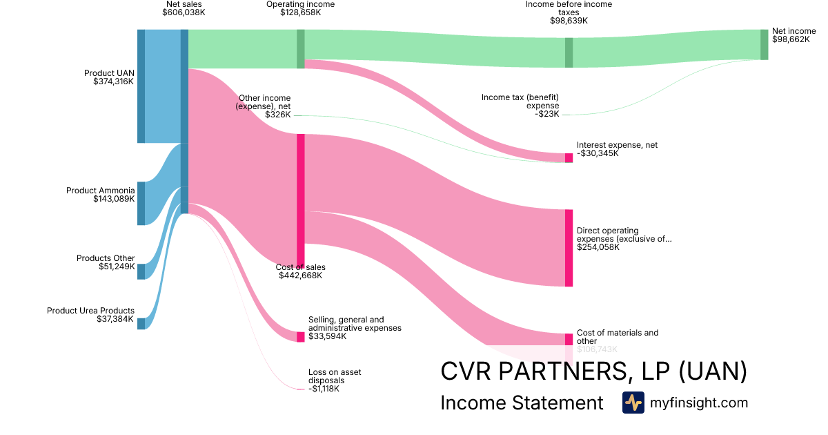 For the year ending 2025-12-31, UAN made $606,038K in revenue. $98,662K in net income. Net profit margin of 16.28%.