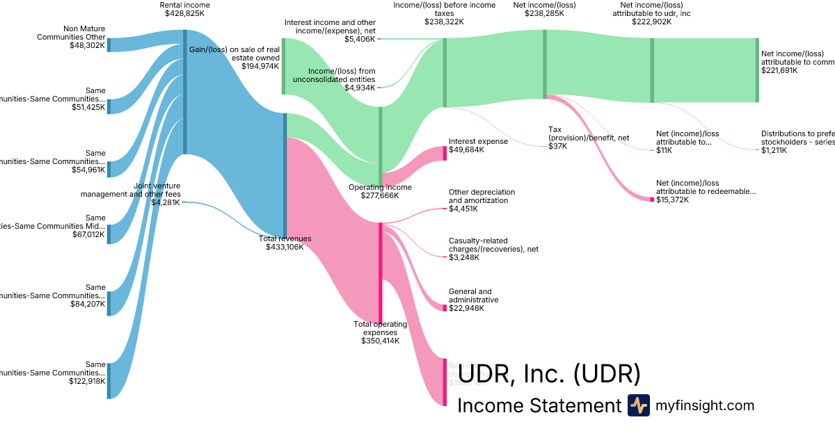 For the year ending 2025-12-31, UDR made $1,712,317K in revenue. $372,865K in net income. Net profit margin of 21.78%.