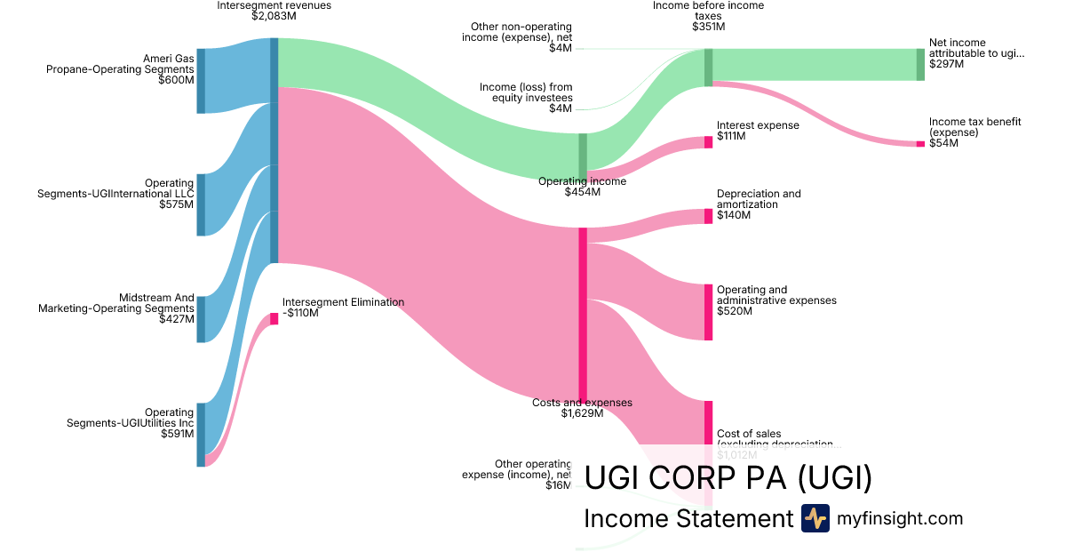 For the quarter ending 2025-12-31, UGI made $2,083M in revenue. $297M in net income. Net profit margin of 14.26%.