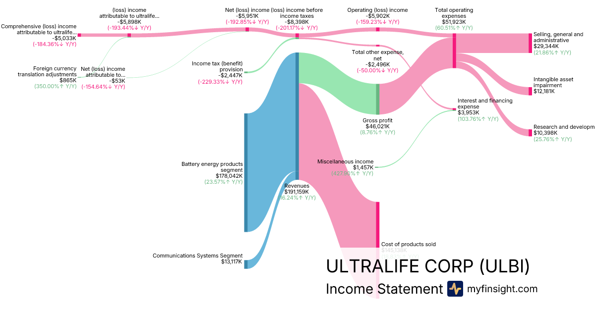 For the year ending 2025-12-31, ULBI made $191,159K in revenue. -$5,033K in net income. Net profit margin of -2.63%.