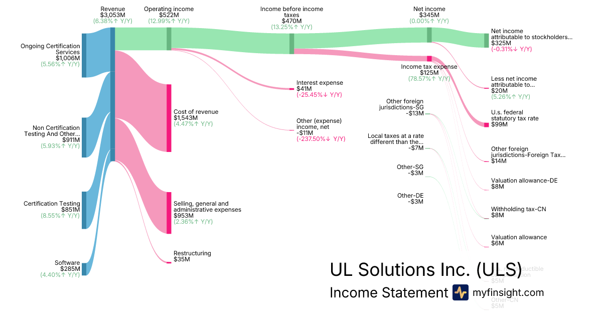 For the year ending 2025-12-31, ULS made $3,053M in revenue. $325M in net income. Net profit margin of 10.65%.
