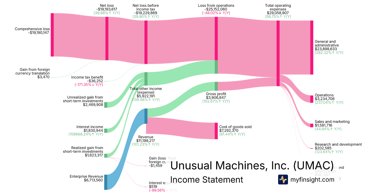 For the year ending 2025-12-31, UMAC made $11,199,217 in revenue. -$19,190,147 in net income. Net profit margin of -171.35%.
