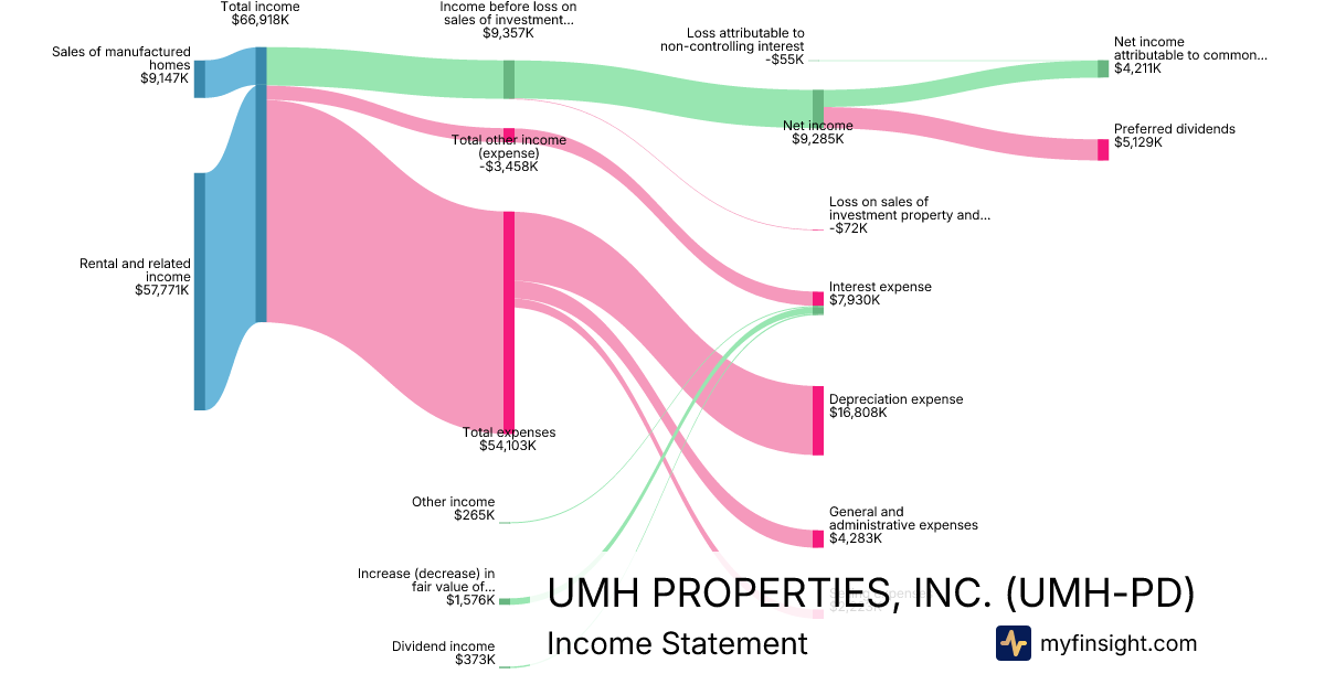 For the quarter ending 2025-09-30, UMH-PD made $66,918K in revenue. $4,211K in net income. Net profit margin of 6.29%.