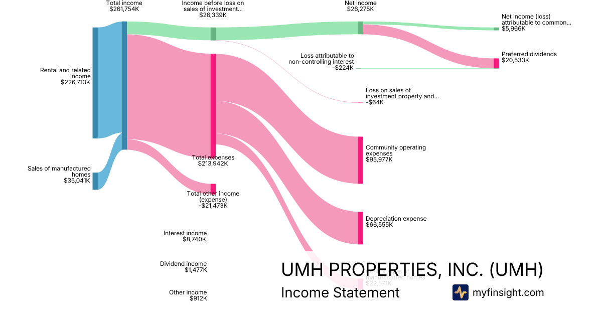 For the year ending 2025-12-31, UMH made $261,754K in revenue. $5,966K in net income. Net profit margin of 2.28%.