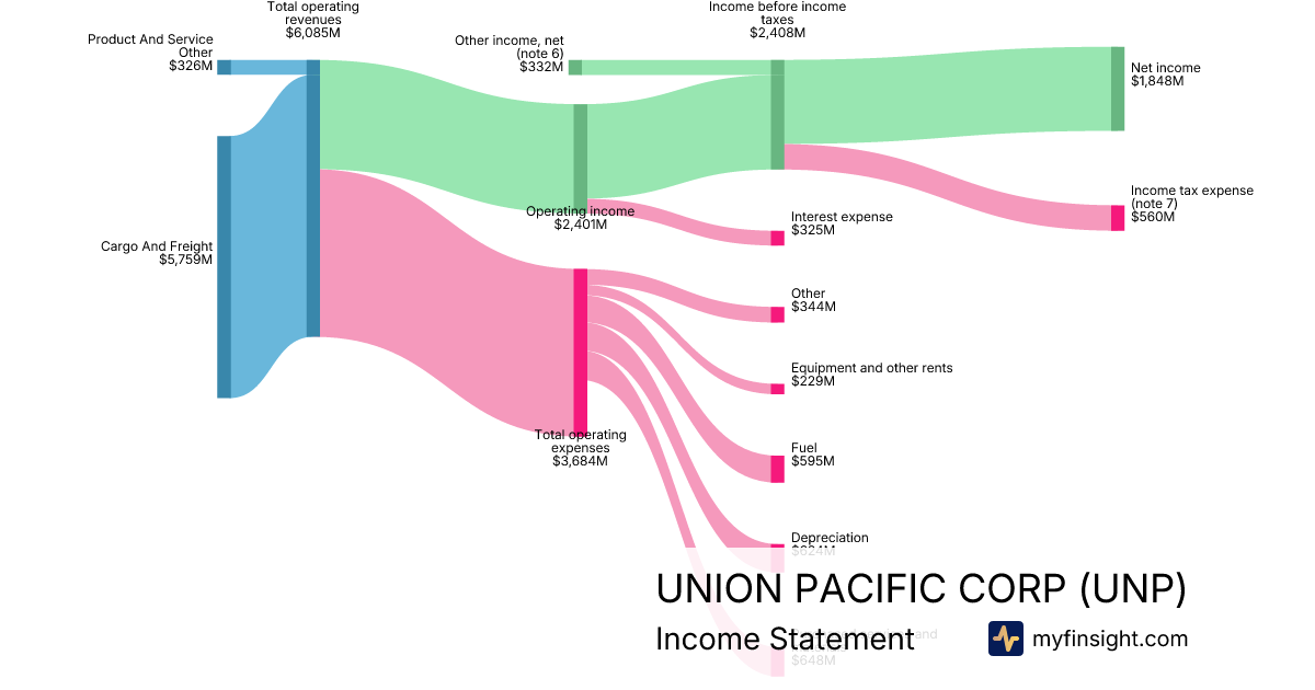 For the year ending 2025-12-31, UNP made $24,510M in revenue. $7,138M in net income. Net profit margin of 29.12%.