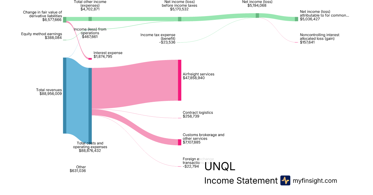 For the quarter ending 2025-02-28, UNQL made $185,360,103 in revenue. $5,036,427 in net income. Net profit margin of 2.72%.