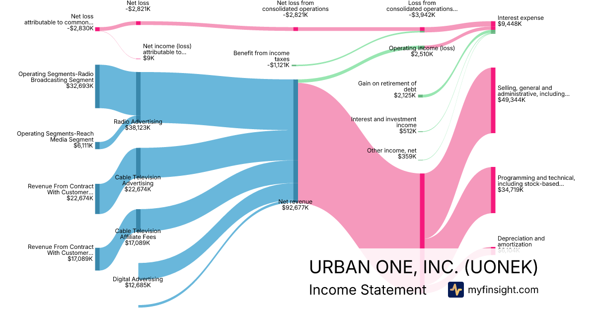 For the quarter ending 2025-09-30, UONEK made $92,677K in revenue. -$2,830K in net income. Net profit margin of -3.05%.