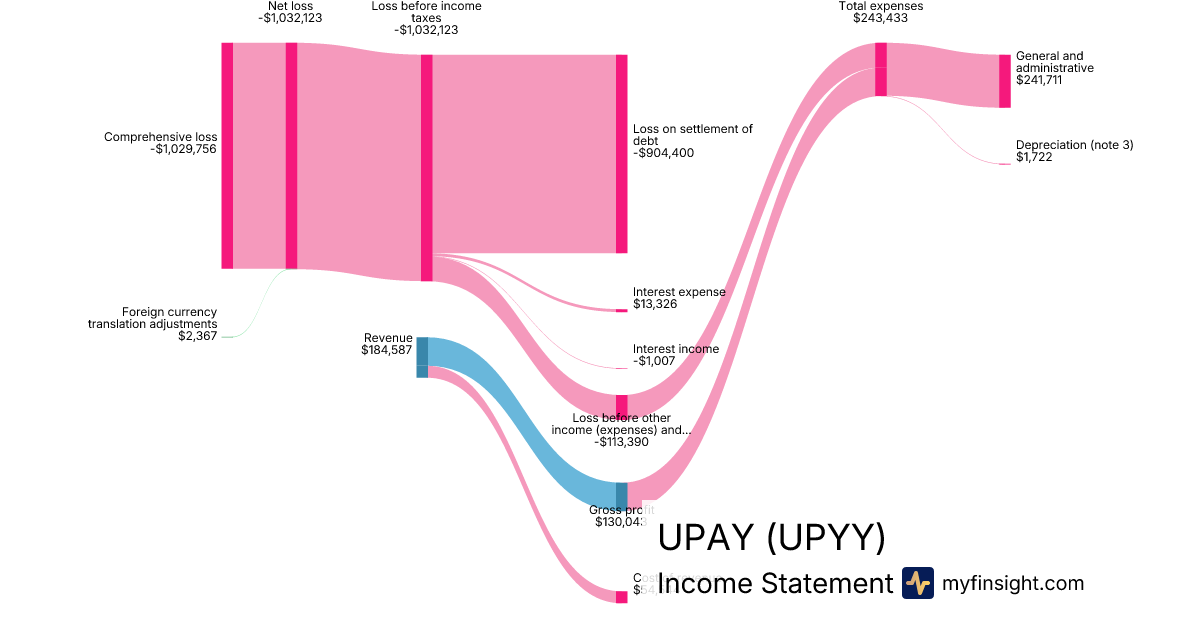 For the quarter ending 2025-11-30, UPYY made $184,587 in revenue. -$1,029,756 in net income. Net profit margin of -557.87%.