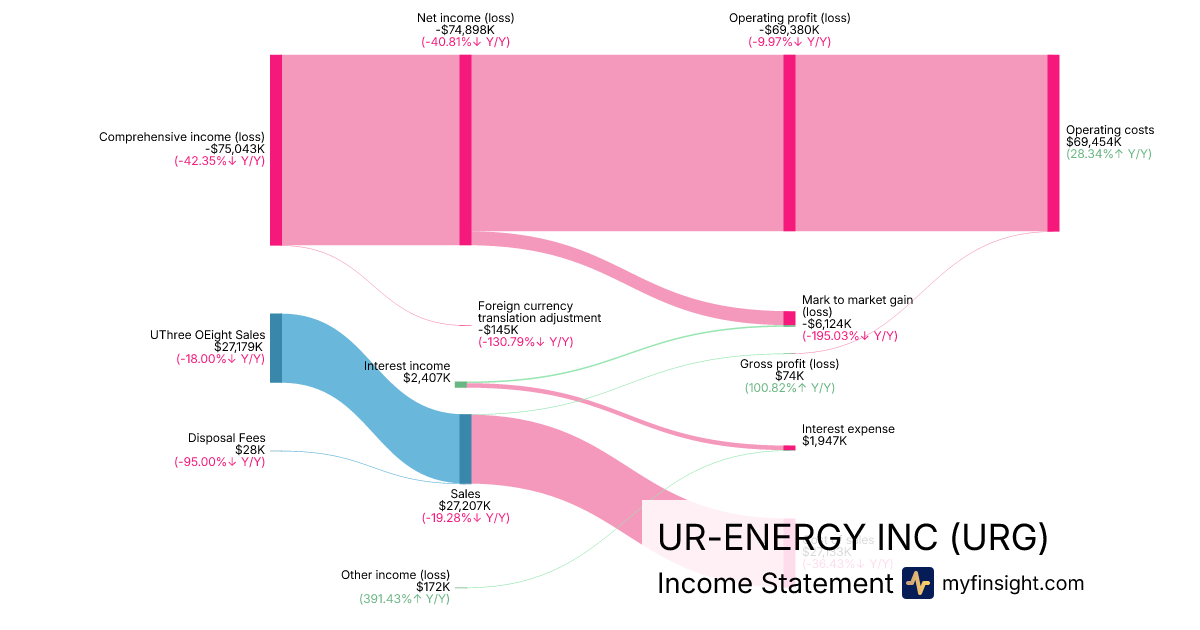 For the year ending 2025-12-31, URG made $27,207K in revenue. -$75,043K in net income. Net profit margin of -275.82%.