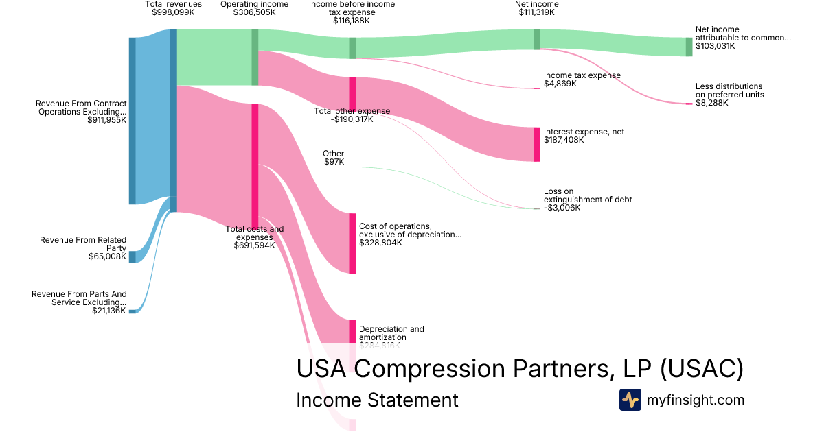 For the year ending 2025-12-31, USAC made $998,099K in revenue. $103,031K in net income. Net profit margin of 10.32%.