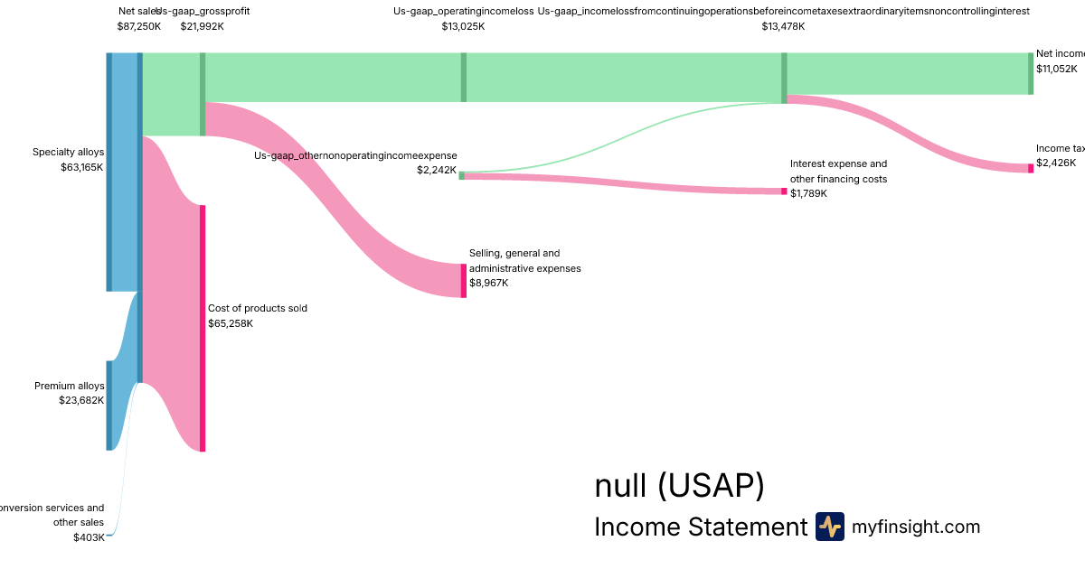 For the quarter ending 2024-09-30, USAP made $87,250K in revenue. $11,052K in net income. Net profit margin of 12.67%.