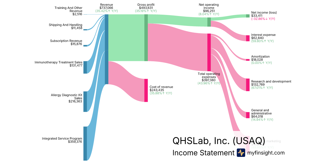 For the quarter ending 2025-09-30, USAQ made $737,066 in revenue. $33,411 in net income. Net profit margin of 4.53%.