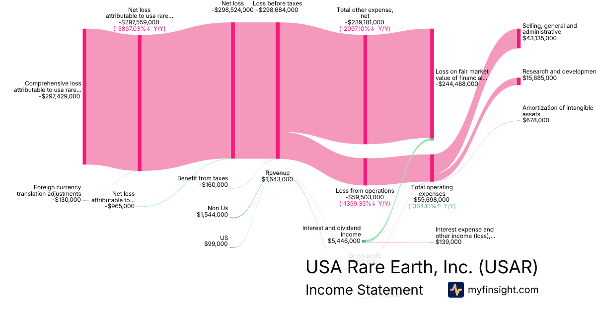 For the year ending 2025-12-31, USAR made $1,643,000 in revenue. -$297,429,000 in net income. Net profit margin of -18102.80%.