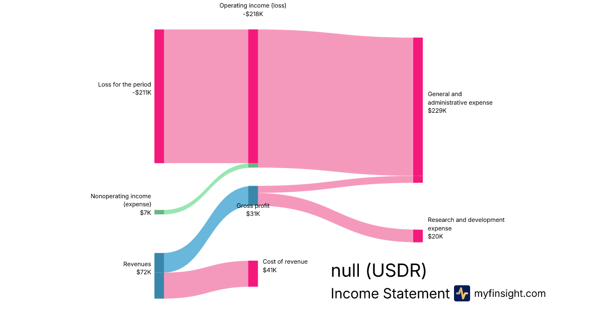 For the quarter ending 2024-09-30, USDR made $72K in revenue. -$211K in net income. Net profit margin of -293.06%.
