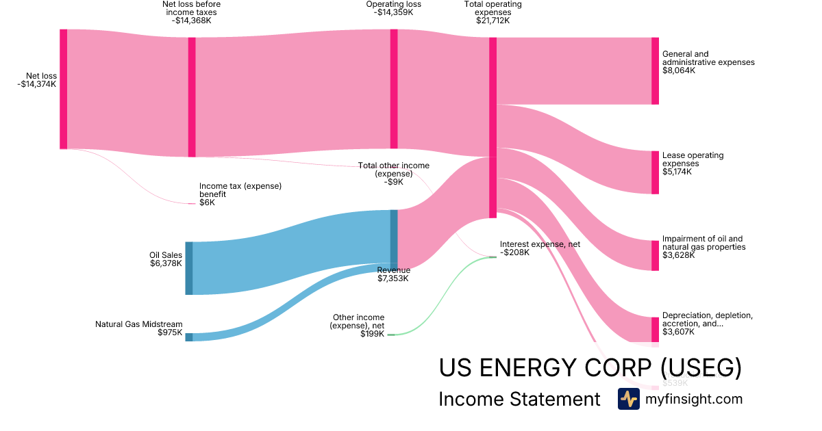 For the year ending 2025-12-31, USEG made $7,353K in revenue. -$14,374K in net income. Net profit margin of -195.48%.