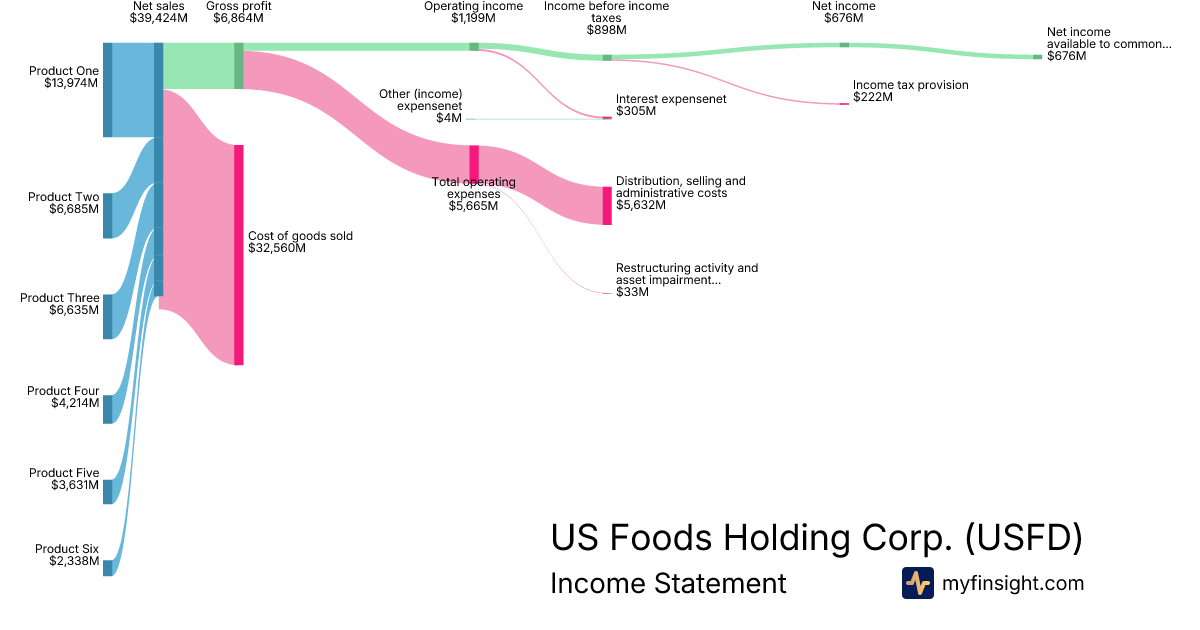 For the year ending 2025-12-27, USFD made $39,424M in revenue. $676M in net income. Net profit margin of 1.71%.