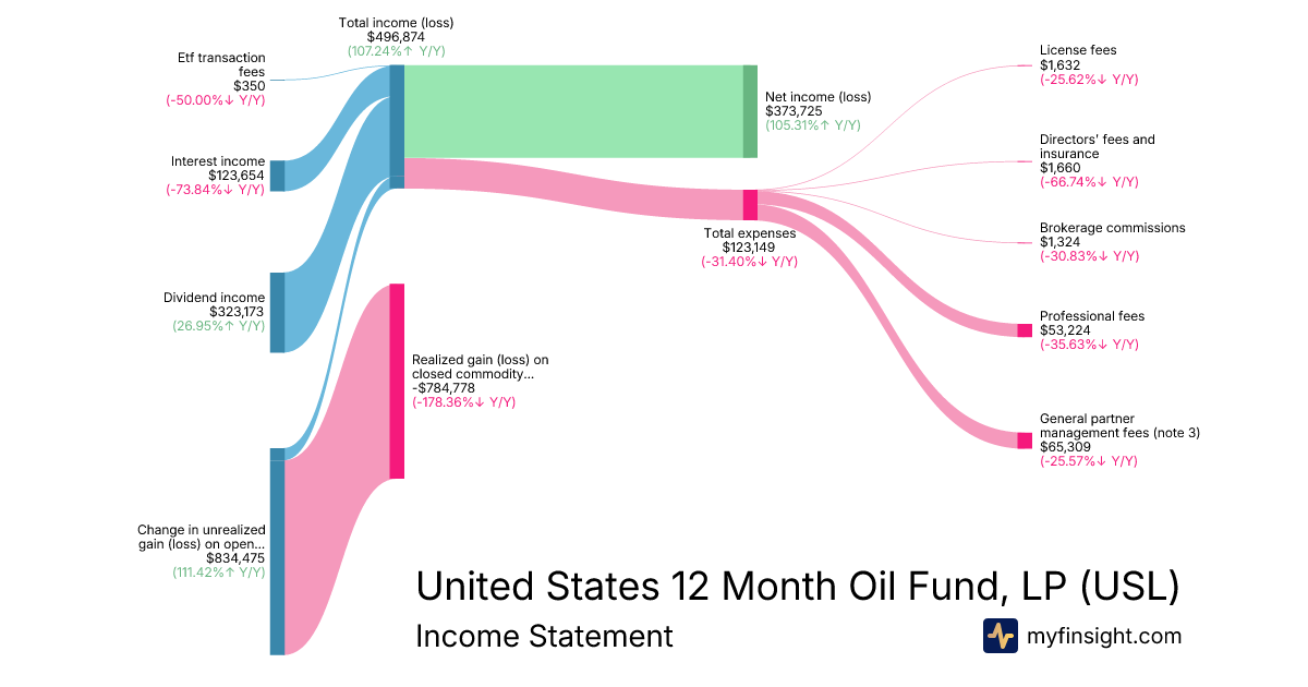 For the quarter ending 2025-09-30, USL made $496,874 in revenue. $373,725 in net income. Net profit margin of 75.22%.
