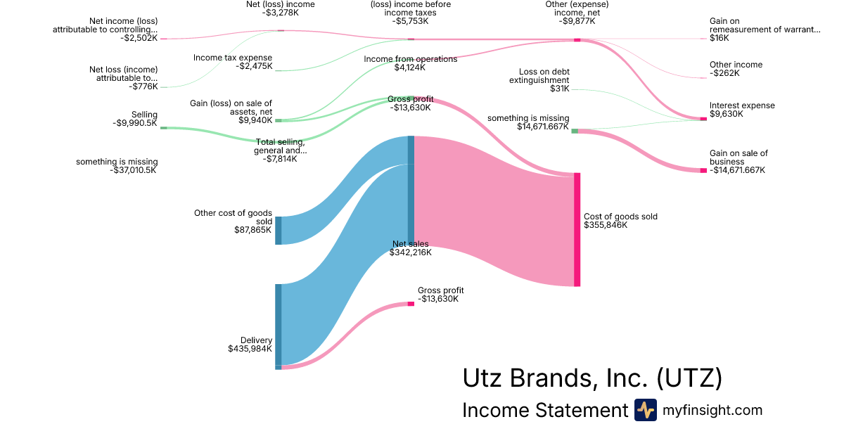 For the year ending 2025-12-28, UTZ made $1,438,800K in revenue. $800K in net income. Net profit margin of 0.06%.