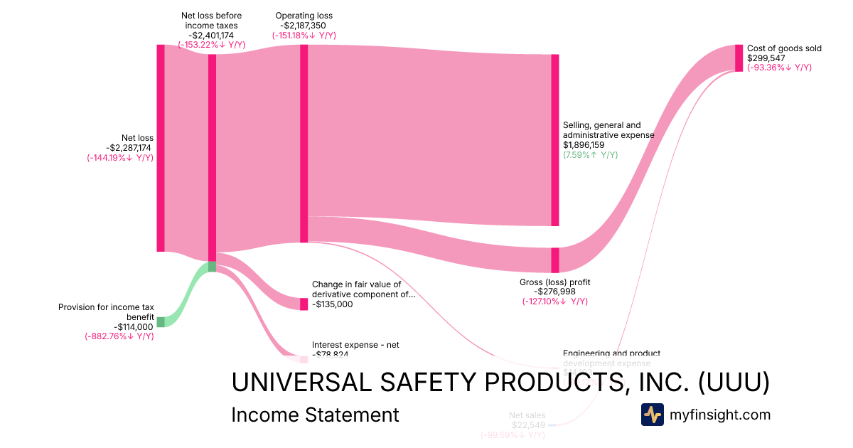 For the quarter ending 2025-12-31, UUU made $22,549 in revenue. -$2,287,174 in net income. Net profit margin of -10143.13%.