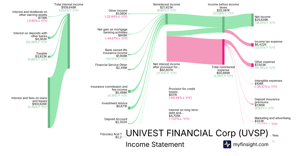 For the quarter ending 2025-09-30, UVSP made $230,564K in revenue. $25,639K in net income. Net profit margin of 11.12%.