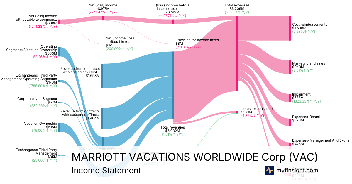 For the year ending 2025-12-31, VAC made $5,032M in revenue. -$308M in net income. Net profit margin of -6.12%.