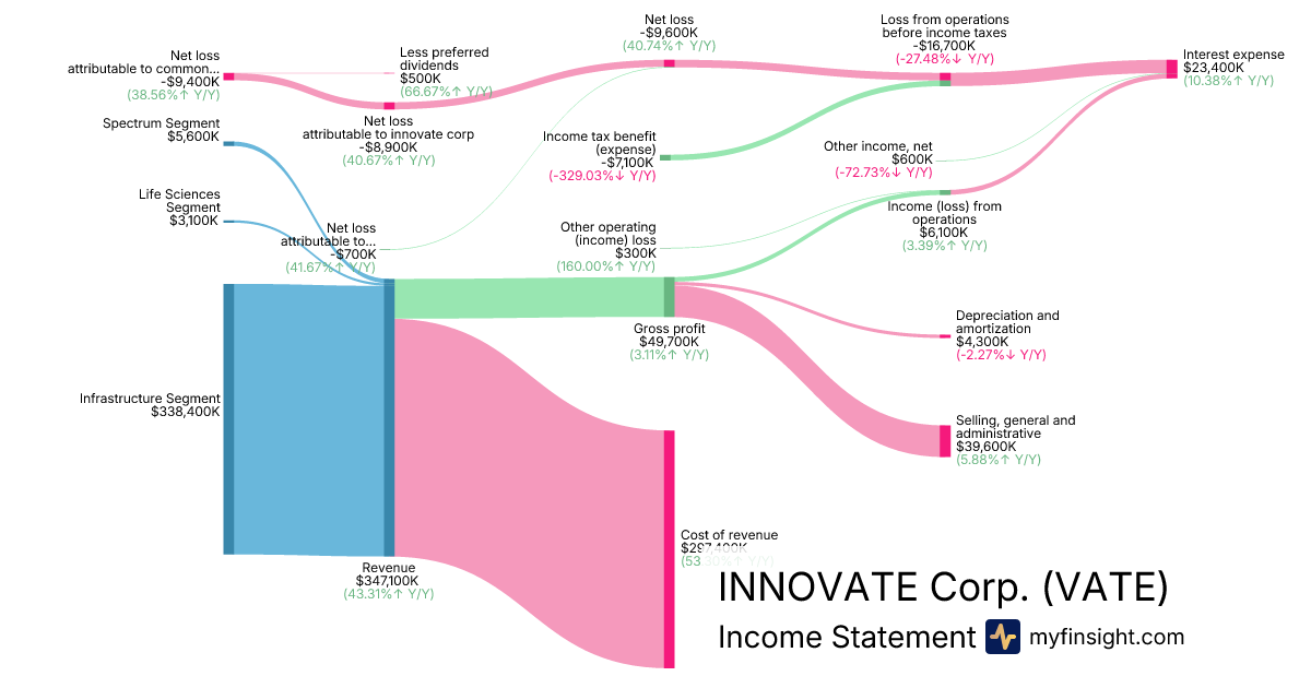 For the quarter ending 2025-09-30, VATE made $347,100K in revenue. -$9,400K in net income. Net profit margin of -2.71%.