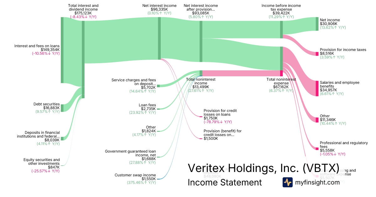 For the quarter ending 2025-06-30, VBTX made $1,550K in revenue. $30,906K in net income. Net profit margin of 1993.94%.