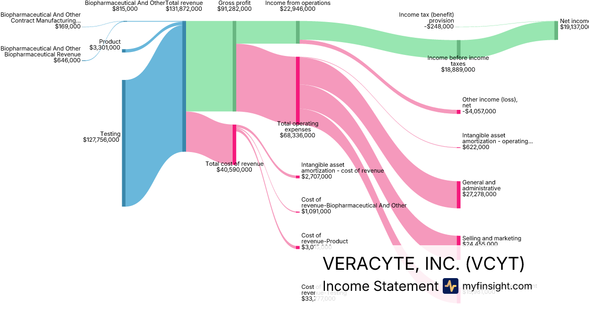 For the quarter ending 2025-09-30, VCYT made $131,872,000 in revenue. $19,137,000 in net income. Net profit margin of 14.51%.