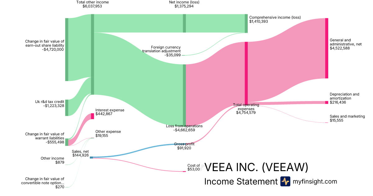 For the quarter ending 2025-09-30, VEEAW made $144,926 in revenue. $1,410,393 in net income. Net profit margin of 973.18%.